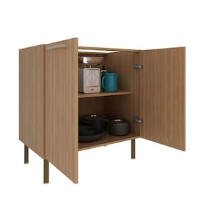 CARACTERÍSTICAS TÉCNICAS: - Produzido em MDP Ecologicamente Correto; - Acabamento BP na Cor Freijó e Bordas em PVC; - Tampo em MDP com Acabamento em Pintura UV na Cor Mármore Branco; - 2 Portas com Dobradiças Metálicas com Amortecedor Slow Motion; - 2 Puxadores em Alumínio na Cor Dourado; - 4 Pés Reguláveis 17 Cm em PVC com Detalhe Cromado; - Suporta até 5Kg cada Prateleira e 20Kg o Tampo.