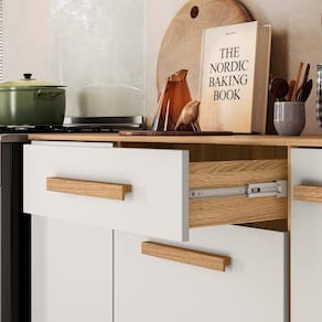 Requer montagem: Sim | Inclui manual de montagem: Sim | Material do corpo: MDP | Tipo de móvel de cozinha: Balcão Cor: Carvalho/Off White