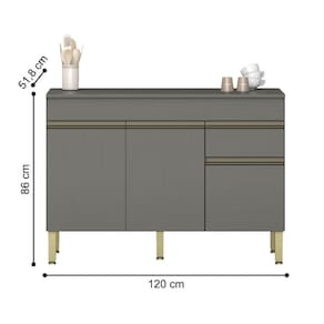 O Balcão possui 3 portas e 1 gaveta e 1 tampo incluso, destaca-se por sua praticidade e eficiência de uso, podendo ser utilizada como complemento de cozinha.