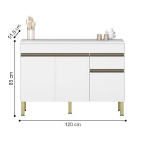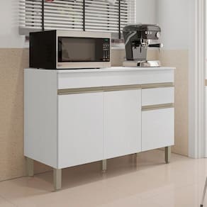 O Balcão possui 3 portas e 1 gaveta e 1 tampo incluso, destaca-se por sua praticidade e eficiência de uso, podendo ser utilizada como complemento de cozinha.