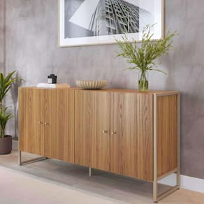 Com linhas retas e visual moderno, o Balcão Voss de 4 portas combina praticidade e sofisticação em qualquer ambiente. Seu estilo neo industrial valoriza a decoração e proporciona ampla capacidade de organização com muito charme.