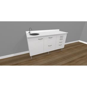 - Acompanha cuba redonda em inox, válvula para pia e torneira com bica móvel