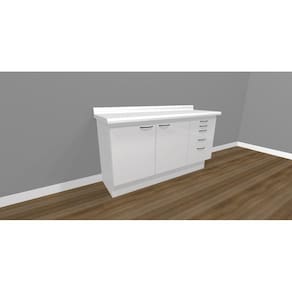 - Tampo com revestimento melamínico, sem emendas entre tampo e rodopia, ideal para assepsia