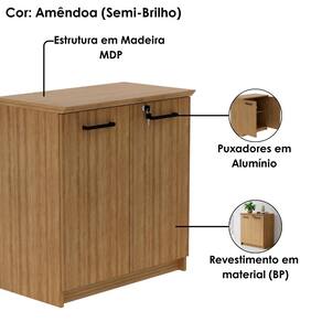 MDPO Balcão Para Escritorio ME4197 é uma opção versátil, oferecendo praticidade e organização com um visual moderno que se adapta facilmente a diferentes espaços, sendo fabricado com estrutura em madeira MDP de 15 mm, tampo com frente usinada de 25 mm com capacidade para até 12 kg e revestimento em material BP, contando com 02 portas, sendo 01 delas com trava por chave, 01 prateleira interna com capacidade para até 12 kg, dobradiças em metal e puxadores em alumínio. Este produto será entregue em 1 volume.