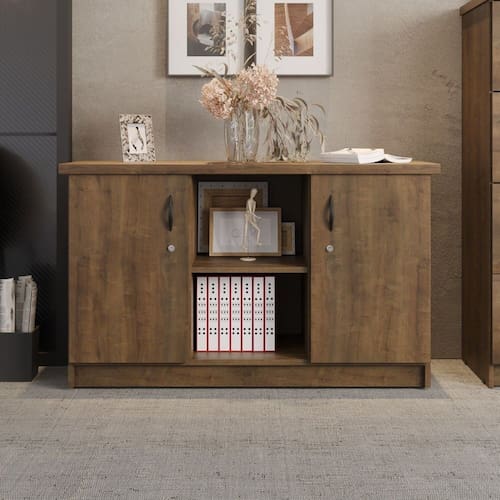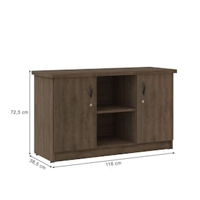 Balcão baixo LINHA LT para escritório, contando 2 portas, nichos e tampo com espessura de 30cm em seu design moderno.