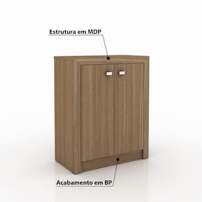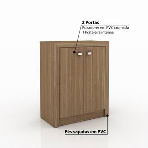 Características - Cor: Amêndoa. - Estrutura em MDP. - Acabamento em BP: Revestimento com laminado melânico de baixa pressão (BP), fornecendo alta resistência à riscos e manchas. - 2 Portas. - 1 Prateleira interna. - Pés 4 sapatas em PVC. - Fundo das gavetas de fibra 3 mm. - Puxadores em PVC cromado. - Corrediças metálicas. - Suporta: Até 15 Kg. - Móvel entregue desmontado.