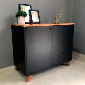Mais que um balcão de escritório, ideal para guardar e organizar os mais diversos itens no compartimento interno, esse modelo ainda conta com charme inegável , sendo capaz de se criar um cantinho do café sobre o tampo, ou seja, esse balcão se transformará em um ponto de encontro, um onde colegas de trabalho se reúnem para compartilhar experiências e soluções. Além de ser uma peça central no escritório, esse balcão também se destaca como um elegante aparador, já que a combinação de seu design atemporal com a funcionalidade versátil faz dele um elemento essencial, que se adapta facilmente a diferentes estilos e necessidades.