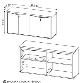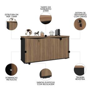 O Balcão para Escritório com Chave 148cm Corp A06 Nogal/Preto, da Mpozenato, é a escolha perfeita para quem busca unir organização e elegância no escritório ou home office.