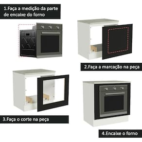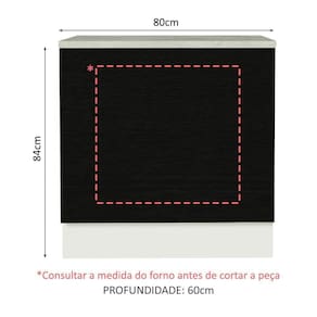 Com profundidade de 60 cm, é ideal para a instalação de fornos de embutir. Para isso, a parte frontal do balcão deve ser recortada conforme as medidas do seu forno.