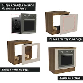 Com profundidade de 60 cm, é ideal para a instalação de fornos de embutir. Para isso, a parte frontal do balcão deve ser recortada conforme as medidas do seu forno.