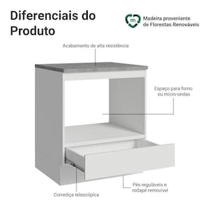 - Um balcão porta forno/micro-ondas com uma gaveta (Acompanha tampo)