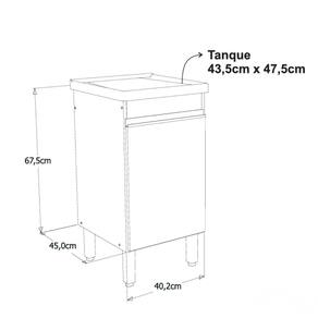 Balcao para Lavanderia 1 Porta 40,2cm com Tanque Amelia AJ Rorato O Balcao para Lavanderia Amelia AJ Rorato 40,2cm com 1 porta e uma solucao pratica e moderna para otimizar o espaco da sua lavanderia. Ele foi pensado para acomodar tanque simples e se adapta muito bem tanto a ambientes compactos quanto a espacos maiores, alem de oferecer um local funcional para armazenar produtos e itens de limpeza proximos ao tanque. Sua estrutura e produzida em BP com revestimento em lamina melaminica texturizada, acabamento com bordas em fita PVC e travessas em madeira, estrutura em pinus de reflorestamento tratado em estufas de alta temperatura e revestimento em HDF nos dois lados. Ja o tanque em marmore sintetico possui espessuras reforcadas e cobertura granitada em gel coat, garantindo brilho intenso e excelente resistencia.