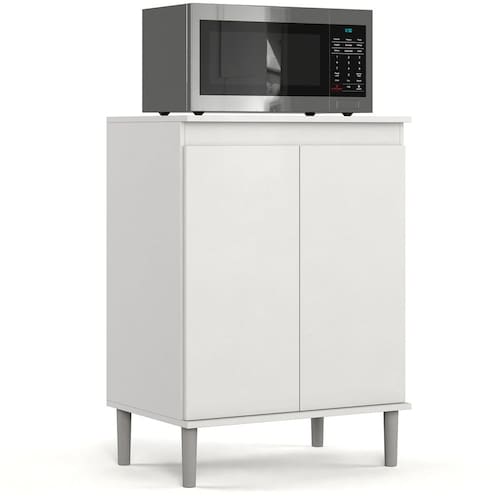 Seu tampo resistente é ideal para acomodar micro-ondas ou pequenos eletrodomésticos com segurança, oferecendo uma solução compacta e eficiente para o ambiente.