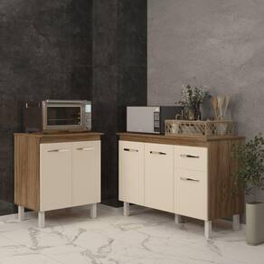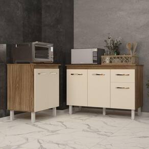 Balcão Para Microondas Ou Forno E Armário Aline 118 Cm Cozinha Gabinete Savana Off White Com Tampo Tampão Savana Transforme sua cozinha com este Kit, que une funcionalidade e design! Inclui um balcão Aline de 120 cm com tampo, perfeito para preparo de alimentos e refeições, e um balcão Jane para forno ou microondas, projetado para instalação segura e organizada. Com materiais de alta durabilidade e acabamento sofisticado, este kit é ideal para quem busca otimizar o espaço com estilo. Modernize sua cozinha com um produto que combina praticidade, qualidade e design! Garanta já o seu e aproveite a comodidade que sua cozinha merece! Características do Balcão:
