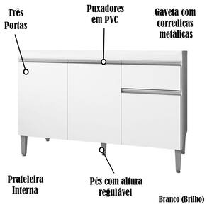 Balcao para Pia 118 cm 3 portas Tatiane, é ideal para quem busca qualidade e sofisticação para compor sua cozinha da forma que desejar. Estrutura em MDP de 15 mm, acabamento em pintura UV (Brilho). Composto por 3 portas com dobradiças metálicas, uma gaveta com corrediças metálicas, puxadores em PVC, espaço de 118 cm para colocação de pia (pia não inclusa), prateleira interna para organizar seus itens de cozinha e acompanha pés em PVC. Produzido com controle de qualidade e com excelente acabamento. Este móvel chegará na sua casa separado em 1 volume.
