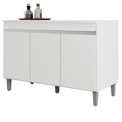 Balcão para Pia 120 cm 3 Portas Manu, é ideal para quem busca qualidade e sofisticação para compor sua cozinha da forma que desejar. Estrutura em MDP de 12 mm, acabamento com pintura UV. Composto por 3 portas articuladas com dobradiças metálicas, espaço para colocação de pia (pia não inclusa), prateleira interna, puxadores em PVC, acompanha pés em PVC com regulagem de altura. Produzido com controle de qualidade e com excelente acabamento. Este móvel chegará na sua casa separado em 1 volume.