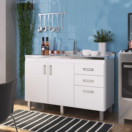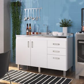 Balcão para pia 120 flex branco, com três portas e duas gavetas e cinco pés, com opção de utilizar cuba. Ideal para complementar o ambiente da cozinha, trazendo praticidade e organização, em um modelo clássico. Suporta Granito: Sim Acabamento da Prateleira: Pintura UV Escala de Brilho da Prateleira: Semi-Brilho Acabamento da Gaveta: Pintura UV Escala de Brilho da Gaveta: Semi-Brilho Material do Puxador da Gaveta: Plástico Acabamento da Porta: Pintura UV Escala de Brilho da Porta: Semi-Brilho Material do Puxador da Porta: Plástico Produto Montado: Sim Acabamento: Pintura UV Acabamento dos Pés: Polipropileno Acompanha Tampo: Não Altura dos Pés: 13 cm Ambiente Principal: Cozinha Balcão Acompanha Pia: Não Cesto para Frutas: Não codigo_ean: 7909903342381 Complexidade da Montagem: Baixa: pode ser montado por uma pessoa sozinha Cor: Branco Cor do Produto: Branco Cor Interna: Branco Escala de Brilho: Semi-Brilho Espessura do Material da Estrutura: 12 mm Gaveta com Chave: Não Itens Inclusos: 1 Balcão, Kit Ferragens e Manual de Montagem Manual de Montagem e Instalação: https://product-hub-prd.madeiramadeira.com.br/855249/documents/071ffb70-55a7-4697-9749-7d8bf6b7d22e1373570balcao1200flexqq.pdf Material da Dobradiça/Corrediça da Porta: Alumínio Material da Gaveta: MDP Material da Porta: MDP Material da Prateleira: MDP Material dos Pés: Polipropileno modular: Não Montagem Flex: Não Necessita Montagem: Sim O Balcão Acompanha Pia: Não Origem do Produto: Nacional Pés Reguláveis: Sim Peso: 28 kg Peso Máximo por Gaveta: 5 kg Peso Máximo por Prateleira: 7 kg Possui Pés: 05 Possui Portas: Sim Possui recorte para Cooktop: Não Recomendações de Uso, Manutenção e Limpeza: Usar pano seco e macio para limpeza de superfícies. Sapatas Niveladoras: Sim Sistema de Montagem: Parafusos, cavilhas Suporta Até (kg): 20 kg Tipo de Corrediça da Gaveta: Simples Tipo de Dobradiça/Corrediça da Porta: Simples Tipo de Porta: Bater Tipo de Puxador da Gaveta: Externo Tipo de Puxador da Porta: Externo