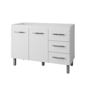 Características: Estrutura em MDP Acabamento em pintura UV 02 Portas com Dobradiças Metálicas 03 Gavetas com Corrediças Metálicas Puxadores em Plástico Cromados Altura dos Pés 16 cm Pés com Regulagem Prateleiras e Amplo Espaço Interno NÃO ACOMPANHA PIA E TAMPO