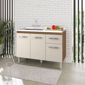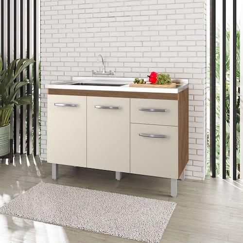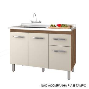Características: Estrutura em MDP Acabamento em pintura UV 03 Portas com Dobradiças Metálicas 01 Gaveta com Corrediças Metálicas Puxadores em Plástico Cromados Altura dos Pés 16 cm Pés com Regulagem Prateleiras e Amplo Espaço Interno NÃO ACOMPANHA PIA E TAMPO