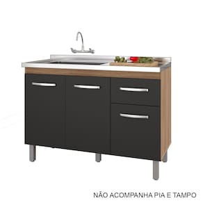 Balcão para Pia 120cm com 03 Portas e 01 Gaveta Anita Savana Preto Moblis