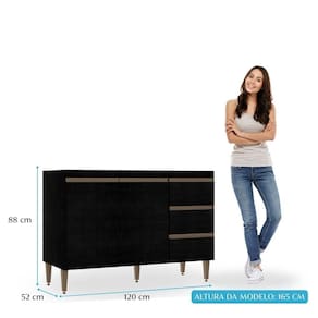 A cozinha preta é uma tendência e foi arquitetada para facilitar a sua rotina diária mantendo seu ambiente organizado e aconchegante. Possui três gavetas e duas portas com prateleira interna. A elegância fica por conta dos puxadores em perfil e os pés na cor bronze dando um toque único de sofisticação. A Cozinha Milão é produzida com materiais de excelente qualidade, garantindo a durabilidade e vida útil. O melhor em móveis no design atual aliando conforto, qualidade e ótimos preços, só na Menu Móveis!