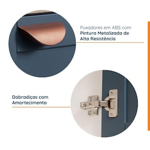 O Balcão de Pia Arizona possui design contemporâneo inspirado no estilo americano. Possui fita de borda em PVC, conferindo alta durabilidade e proteção contra umidade ao móvel. As portas e frentes de gaveta são feitas em MDF e possuem acabamento em Finish Foil, além disso as dobradiças possuem amortecimento, possibilitando fechamento de portas “soft closing”e suas corrediças são telescópicas, possibilitando abertura total da gaveta. O Balcão possui rodapé removível em PVC que pode ser instalado facilmente nos pés do produto. A gaveta superior também possui porta talheres em plástico injetado na cor branca, conferindo praticidade e usabilidade no dia a dia! Suporta Granito: Sim Acabamento da Prateleira: Pintura UV Escala de Brilho da Prateleira: Semi-Brilho Acabamento da Gaveta: Finish Foil Material do Puxador da Gaveta: Plástico Acabamento da Porta: Finish Foil Escala de Brilho da Porta: Semi-Brilho Material do Puxador da Porta: Plástico Acabamento: Plástico Acabamento dos Pés: Plástico Acompanha Tampo: Não Altura dos Pés: 14 cm Ambiente Principal: Cozinha Balcão Acompanha Pia: Não Complexidade da Montagem: Média: pode ser montado por mais de uma pessoa e/ou necessite de maior conhecimento para montagem Cor: Branco/Azul Cor do Pés: Branco Cor do Produto: Branco/Azul Escala de Brilho: Acetinado Gaveta com Chave: Não Informações Complementares: Portas com dobradiças com amortecimento e gavetas com corrediça telescópica. Itens Inclusos: 1 Balcão, kit de ferragens e instrução de montagem Linha ou Coleção: Arizona Manual de Montagem e Instalação: https://cdn2.madeiramadeira.com.br/atributo/casamia/974997-11-0016-manualdemontagem-balcaopia120cmarizona.pdf Material da Gaveta: MDF/MDP Material da Porta: MDF Material da Prateleira: MDP Material dos Pés: PVC Necessita Montagem: Sim Origem do Produto: Nacional Pés Reguláveis: Sim Peso: 39,5 kg Peso Máximo por Gaveta: 5 kg Peso Máximo por Prateleira: 5 kg Possui Pés: Rodapé Possui Portas: 02 Possui recorte para Cooktop: Não Recomendações de Uso, Manutenção e Limpeza: Retire o pó com flanela seca. Sapatas Niveladoras: Sim Sistema de Montagem: Parafusos, Cavilhas e Minifix Suporta Até (kg): 27 kg Tipo de Corrediça da Gaveta: Metálica Telescópica Tipo de Dobradiça/Corrediça da Porta: Metálica Tipo de Porta: Bater Tipo de Puxador da Gaveta: Externo Tipo de Puxador da Porta: Externo