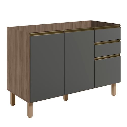 O Balcão Para Pia 120cm Sem Tampo Maly N03 Carvalho/Grafite, da Mpozenato em MDF de 15mm com acabamento em pintura UV é uma escolha elegante e funcional para uma Cozinha Moderna.