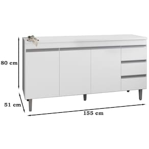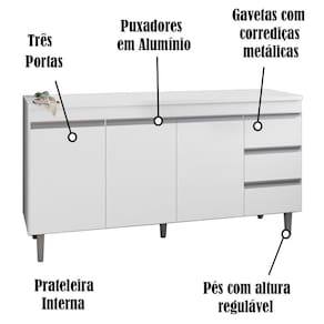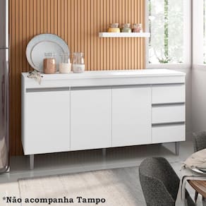 Balcao para Pia 155 cm 3 portas Andreia, é ideal para quem busca qualidade e sofisticação para compor sua cozinha da forma que desejar. Estrutura em MDP de 12 e 15 mm, acabamento com pintura UV (Brilho/Fosco). Composto por 3 portas articuladas com dobradiças metálicas, 3 gavetas com corrediças metálicas com deslize suave, espaço para colocação de pia (pia não inclusa), prateleira interna, puxadores em alumínio, acompanha pés em PVC. Este é um módulo avulso dos produtos REAJL, você pode adquirir outras peças dessa composição que são vendidas separadamente. Produzido com controle de qualidade e com excelente acabamento. Este móvel chegará na sua casa separado em 1 volume.