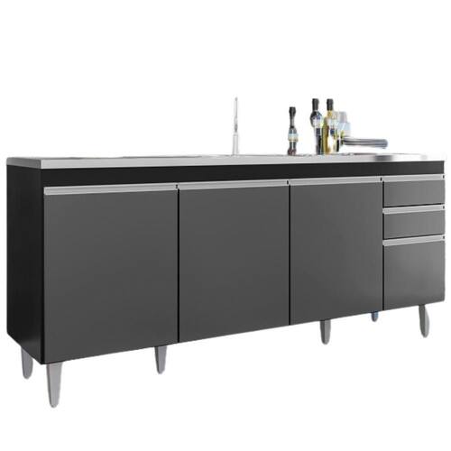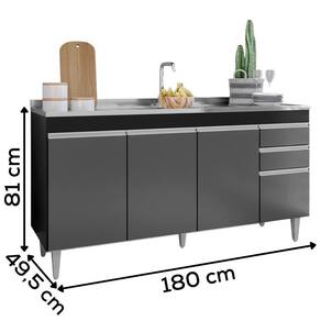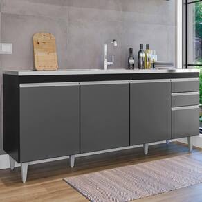 Balcao Para Pia 4 Portas 2 Gavetas 180 Cm Bp Agatha Preto Grafite Grafite