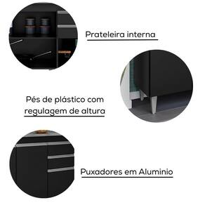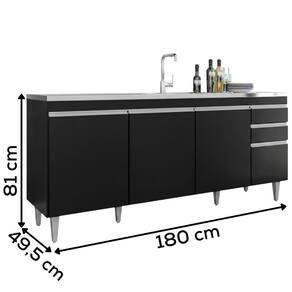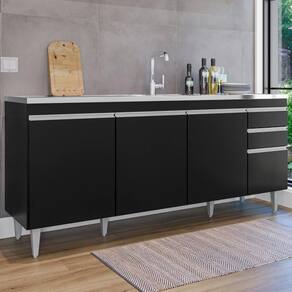 Balcao Para Pia 4 Portas 2 Gavetas 180 Cm Bp Agatha Preto