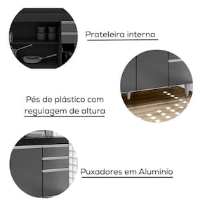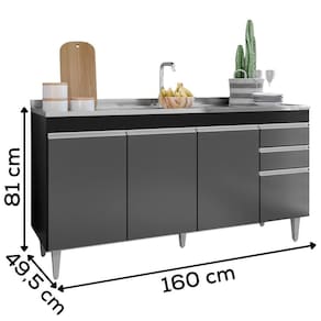 Balcao Para Pia 4 Portas 2 Gavetas Bp 160 Cm Lorena Preto Grafite Grafite