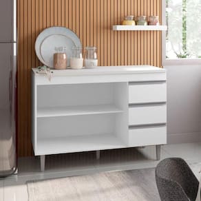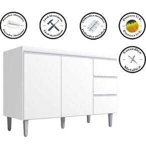 Máxima Organização e Estilo! Com 02 portas e 03 gavetas espaçosas, suas coisas estarão sempre bem guardadas nesse lindo balcão. A prateleira interna permite uma distribuição inteligente dos itens. Sua pintura U.V de alta qualidade oferece elegância e resistência. E para um toque de sofisticação, puxadores de alumínio. Aproveite agora esta oferta e transforme sua cozinha!