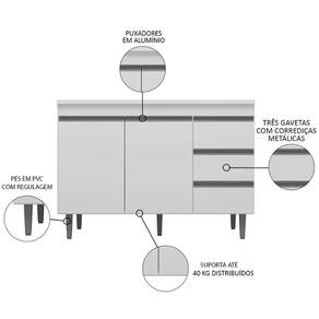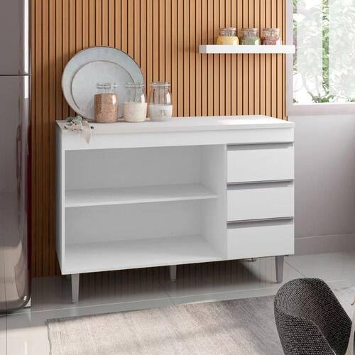 Balcão para Pia Cozinha 120cm Andréia 2 Portas 3 Gavetas sem Tampo Branco - AJL