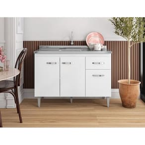 Balcão para Pia Gabriela 120cm 3 Portas e 1 Gaveta - Branco