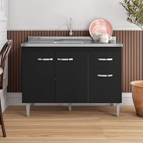O Balcão Gabinete de Pia 120cm Gabriela da AJL Móveis é uma excelente peça para ser utilizada na sua cozinha e organizar seus utensílios. Conta com estrutura em MDP/MDF, 3 portas convencionais com amplo espaço interno e 1 gaveta para melhor auxiliar nessa tarefa, além disso, seu acabamento em pintura UV garante maior durabilidade e resistência. Outro diferencial são os pés reguláveis que facilitam a posição do móvel. Um charme, não é mesmo? NÃO ACOMPANHA TAMPO/PIA.