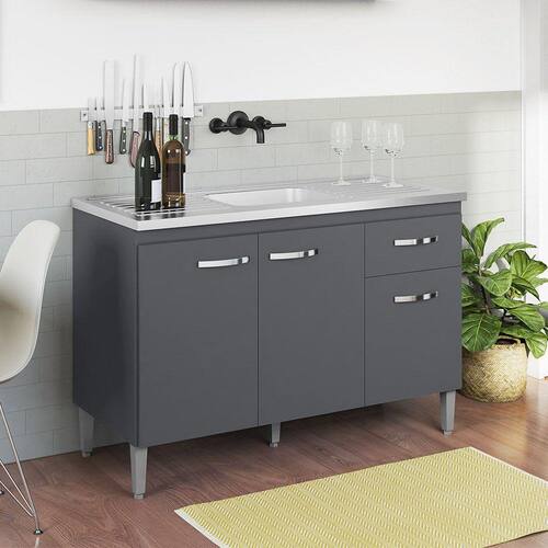 O Balcão Gabinete de Pia 120cm Gabriela da AJL Móveis é uma excelente peça para ser utilizada na sua cozinha e organizar seus utensílios. Conta com estrutura em MDP/MDF, 3 portas convencionais com amplo espaço interno e 1 gaveta para melhor auxiliar nessa tarefa, além disso, seu acabamento em pintura UV garante maior durabilidade e resistência. Outro diferencial são os pés reguláveis que facilitam a posição do móvel. Um charme, não é mesmo? NÃO ACOMPANHA TAMPO/PIA.