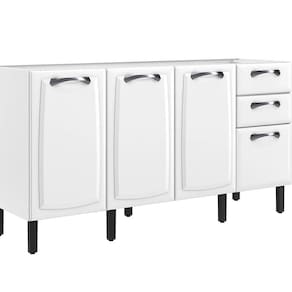 Este Balão é perfeito para quem procura aliar elegância e praticidade. Suas linhas arredondadas e os elaborados detalhes nas portas trazem um encanto todo especial para sua cozinha, além de ter espaço suficiente para ter todos os produtos diários sempre à mão. Feito em aço, o Gabinete é bastante resistente. É composto de 4 portas e 2 gavetas e puxadores externos feitos de PS metalizado, conjugando durabilidade e beleza.
