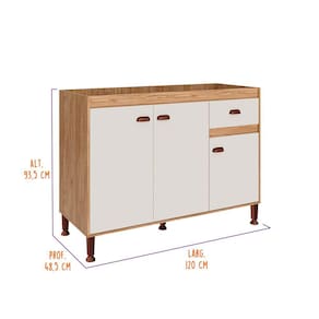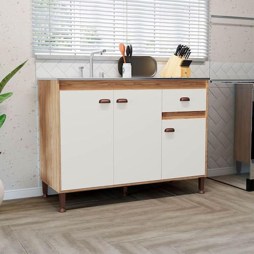 Dê um toque de elegância e praticidade à sua cozinha com o Balcão! Produzido em MDP 15 mm e MDF 3 mm, este balcão é resistente e durável, perfeito para o dia a dia. As 3 portas e 1 gaveta com corrediças metálicas garantem amplo espaço para armazenar seus utensílios e mantimentos, enquanto os pés com regulagem de altura facilitam a adaptação a qualquer ambiente. O acabamento em pintura UV nas cores Mel e Off White oferece um visual moderno e sofisticado, que combina com diversos estilos de decoração. Os puxadores estilo concha em ABS completam o design com um toque de charme! CARACTERÍSTICAS TÉCNICAS: - Produzido em MDP 15 mm e MDF 3 mm; - Acabamento em Pintura UV na Cor Mel e Off White; - Gaveta com Corrediças Metálicas; - Pés com Regulágem de Altura; - Puxadores Estilo Concha em ABS; - Possui 3 Portas e 1 Gaveta. *BALCÃO NÃO POSSUI TAMPO. DIMENSÕES: Altura: 93,5 CmLargura: 120 CmProfundidade: 48,5 CmPeso: 30,9 KG INFORMAÇÕES ADICIONAIS: - ATENÇÃO: Não trabalhamos e não nos responsabilizamos pela montagem do móvel. Antes da montagem conferir se o produto está de acordo com o que comprou, produto montado e danificado pela montagem não será aceito troca. Montagem e instalação por conta do comprador.- As imagens ambientadas são meramente ilustrativas e podem apresentar itens que não compõe o produto. As cores do produto podem variar de acordo com o monitor, a iluminação do ambiente ou sua percepção visual.- Limpeza: Deve ser feita com pano macio e seco ou levemente umedecido com água e sabão neutro. Não devem ser utilizados abrasivos como palha de aço e objetos cortantes.Garantia para defeitos de fabricação conforme Código de Defesa do Consumidor.