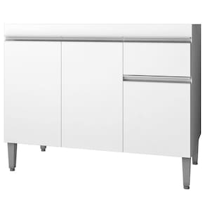 Balcão Para Pia Tatiane, compacto e funcional, ideal para seu dia a dia! Estrutura em MDP (12/15 mm - fundo 3 mm) com acabamento em pintura UV. Composto por portas com dobradiças metálicas, gaveta única com corrediça metálica, ampla prateleira interna, puxadores em alumínio e pés em plástico com regulagem. PIA / TAMPO NÃO INCLUSO. Produto será entregue em 01 volume.