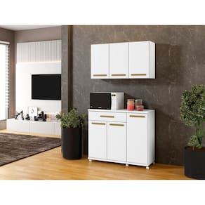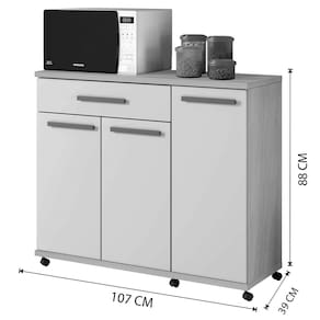 Ideal para ser utilizado como complemento da cozinha, compacto, com amplo espaço interno. o Balcão Parati vai proporcionar praticidade e funcionalidade a sua cozinha. Com suas 03 portas e ampla gaveta ele ajudará a manter sua cozinha sempre bonita e organizada. Além disso ele conta com rodízios para facilitar a locomoção.\nEspecificações do Produto Montado: Altura: 88 cm Largura: 107 cm Profundidade: 39 cm Peso: 38Kg\nGarantia: 3 meses Material da estrutura: MDF 18mm Acabamento: Pintura U.V. Número de Portas: 03 Número de Gavetas: 01 Número de Prateleiras: 02 Rodizio incluso: Sim.\nObservações: Não oferecemos serviço de montagem, mas todos os produtos possuem manual de montagem com o passo a passo. Recomendamos contratar um profissional de montagem. Pode existir alguma diferença de tonalidade entre a foto e o produto, devido ao tratamento de imagens e à calibração de cores do monitor.