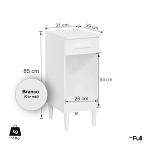 Possui 1 porta + 1 gaveta com puxadores modernos, que garantem fácil acesso e um visual mais elegante. A cor branca traz leveza e combina com qualquer estilo de decoração.