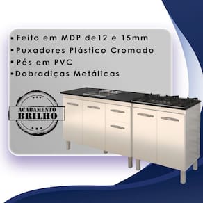 Balcão para Pia Anitta e Cooktop 5 Bocas Jade, é ideal para quem busca qualidade e sofisticação para compor sua cozinha da forma que desejar. Estrutura em MDP de 12 e 15 mm, acabamento em pintura UV. Kit com 01 balcão para pia de 120cm de 3 portas e 1 gaveta e 01 balcão para Cooktop (64x35,5 cm tampo já recortado), com 02 portas articuladas, dobradiças metálicas, puxadores em plástico cromado, espaço para utensílios, acompanham pés fixos que garantem a firmeza que o móvel precisa. Produzido com controle de qualidade e com excelente acabamento. Este móvel chegará em sua casa separado em 02 volumes.