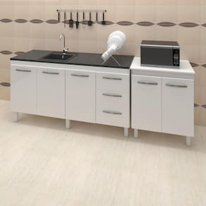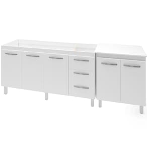 Balcão para Pia Diana e Multiuso Serena, é ideal para quem busca qualidade e sofisticação para compor sua cozinha da forma que desejar. Estrutura em MDP de 12 e 15mm, acabamento em pintura UV. Kit com 01 balcão para pia de 150cm de 3 portas e 3 gavetas e 01 balcão Multiuso, com 02 portas articuladas, dobradiças metálicas, puxadores em plástico cromado, espaço para utensílios, acompanham pés fixos que garantem a firmeza que o móvel precisa. Produzido com controle de qualidade e com excelente acabamento. Este móvel chegará em sua casa separado em 02 volumes.