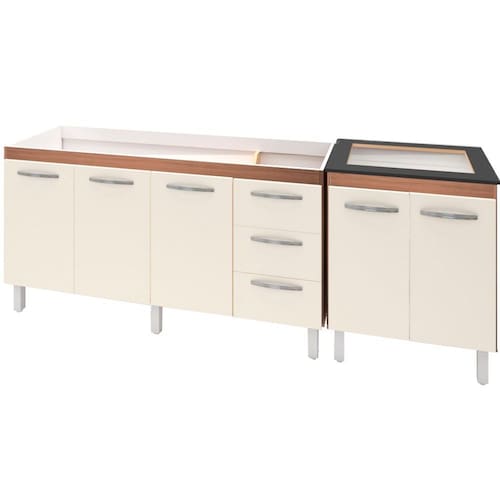 Balcão para Pia Emily e Cooktop 4 Bocas Jade, é ideal para quem busca qualidade e sofisticação para compor sua cozinha da forma que desejar. Estrutura em MDP de 12 e 15 mm, acabamento em pintura UV. Kit com 01 balcão para pia de 160cm de 3 portas e 3 gavetas e 01 balcão para Cooktop (53x36 cm tampo já recortado), com 02 portas articuladas, dobradiças metálicas, puxadores em plástico cromado, espaço para utensílios, acompanham pés fixos que garantem a firmeza que o móvel precisa. Produzido com controle de qualidade e com excelente acabamento. Este móvel chegará em sua casa separado em 02 volumes.