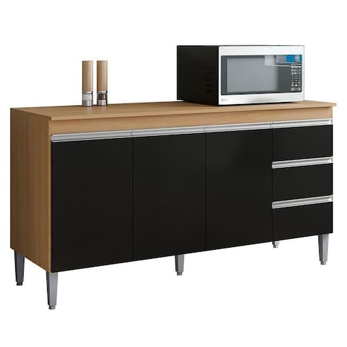 Tonalidade: Multicolorido | Produto: Balcão de Cozinha | Fabricante: AJL Móveis | Tipo de móveis de cozinha: Balcão Cor: Amêndoa/Preto