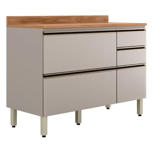 Balcão Pia Proença 120cm 1 Porta e 4 Gavetas com Tampo MDF - Demartêz - Nude