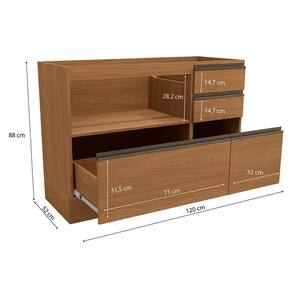 Design versátil que une beleza, resistência e pde no seu dia a dia. O Balcão para pia com 120 cm de largura é fabricado em MDP com espessura de 15mm, acabamento em pintura texturizada UV (fosco) ou (semibrilho). Conta com 1 porta basculante equa com dobradiça reta de 35mm com amortecedor e pistão a gás, 4 gavetas (sendo 2 gavetão) com corrediças telescópicas e puxadores em alumínio. Possui sistema de montagem , podendo ser instalado suspenso ou com rodapé, adaptando-se ao seu projeto e à sua necessidade. Este móvel chegará na sua casa separado em 01 volume.