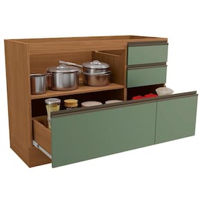 Design versátil que une beleza, resistência e pde no seu dia a dia. O Balcão para pia com 120 cm de largura é fabricado em MDP com espessura de 15mm, acabamento em pintura texturizada UV (fosco) ou (semibrilho). Conta com 1 porta basculante equa com dobradiça reta de 35mm com amortecedor e pistão a gás, 4 gavetas (sendo 2 gavetão) com corrediças telescópicas e puxadores em alumínio. Possui sistema de montagem , podendo ser instalado suspenso ou com rodapé, adaptando-se ao seu projeto e à sua necessidade. Este móvel chegará na sua casa separado em 01 volume.