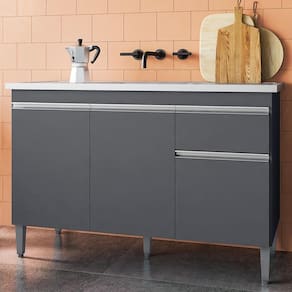 Tonalidade: Multicolorido | Produto: Balcão de Cozinha | Fabricante: AJL Móveis | Tipo de móveis de cozinha: Balcão Cor: Cinza