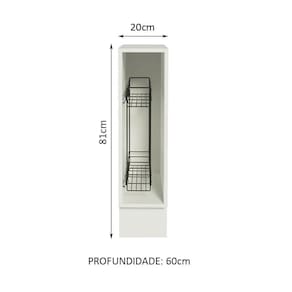 Balcão Porta-Temperos Madesa para Cozinha Lux, Glamy e Stella 20 x 60 cm (Sem Tampo) - Branco